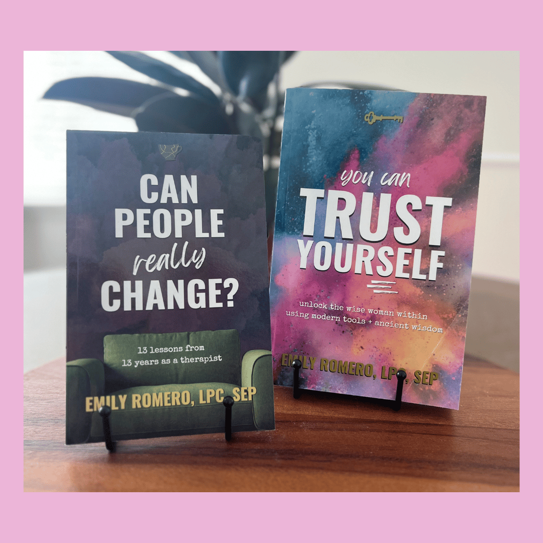 Emily is a Self-Trust guide, author, and former trauma therapist for over 13 years. With a passion for holistic and integrative approaches, she specialized in working with anxiety through the lens of somatics, parts work, and psychedelic therapy. She’s the creator of the Self-Trust Model. An innovative framework designed to empower women to overcome self-doubt, overthinking, and insecurity. This model is at the heart of all the transformational group experiences she leads. Inside the epic group containers, the focus is on building Self-Trust, because it’s not as easy as “just trust yourself!” Emily is the author of Can People Really Change?: 13 Lessons from 13 Years as a Therapist.